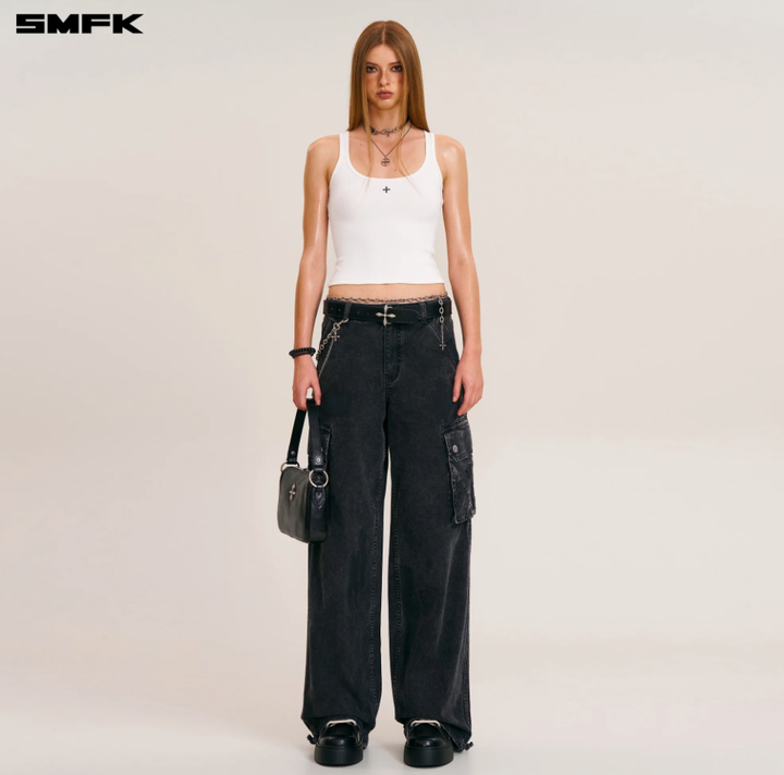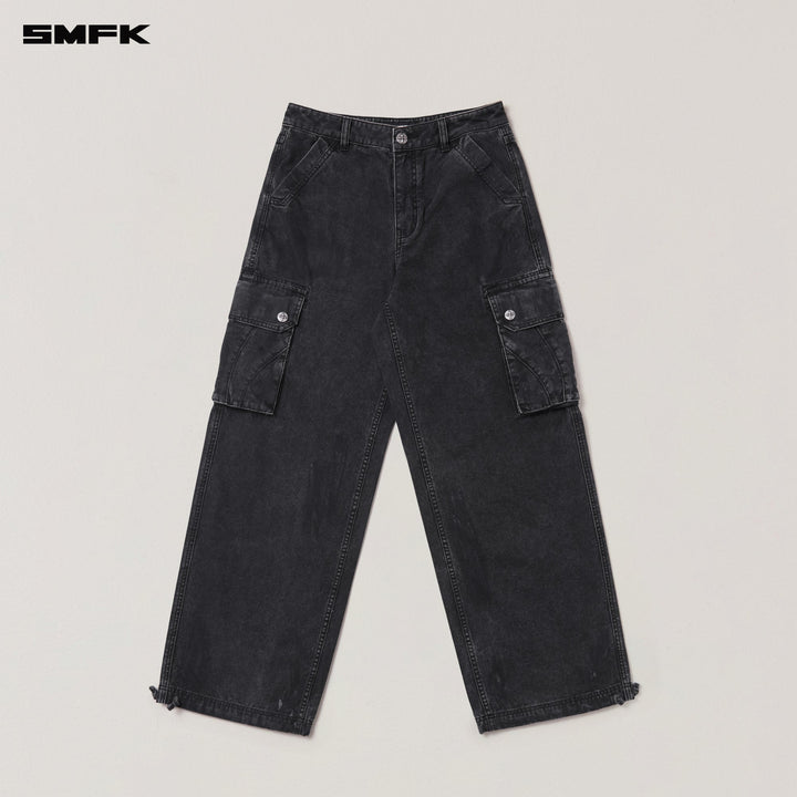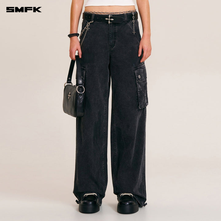RAGE-WILD ORIGIN HANDCRAFT LOOSE STRAIGHT CARGO PANTS/GARMENT DYED WILD BLACK