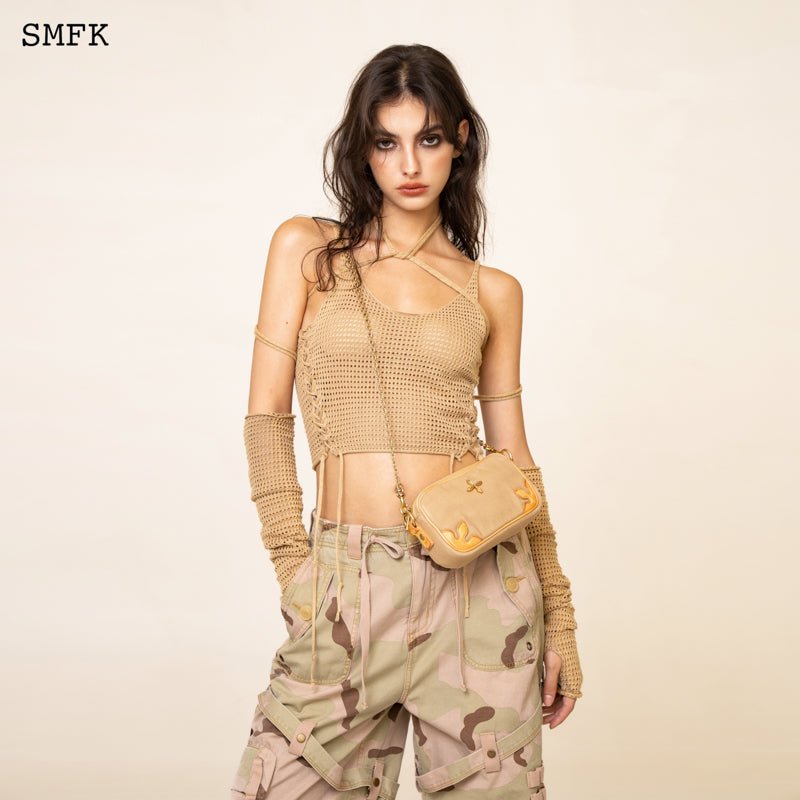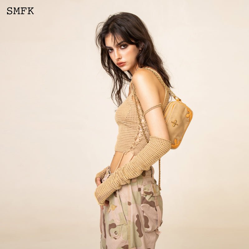 COMPASS ADVENTURE WHEAT SHOULDER BAG WITH CHAIN