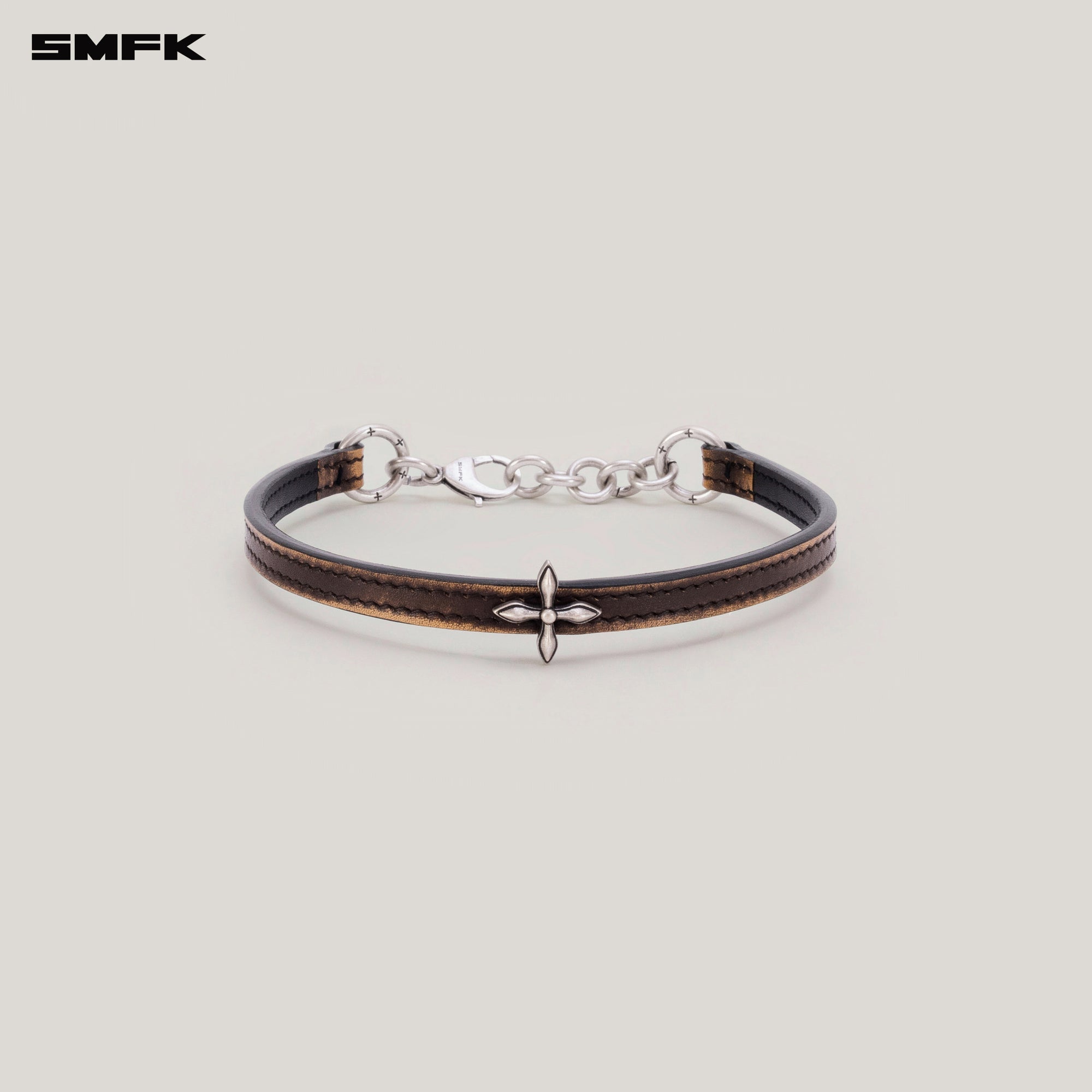 COMPASS RIVET PATINA LEATHER CHOCKER SMALL WILD HORSE BROWN PATINA