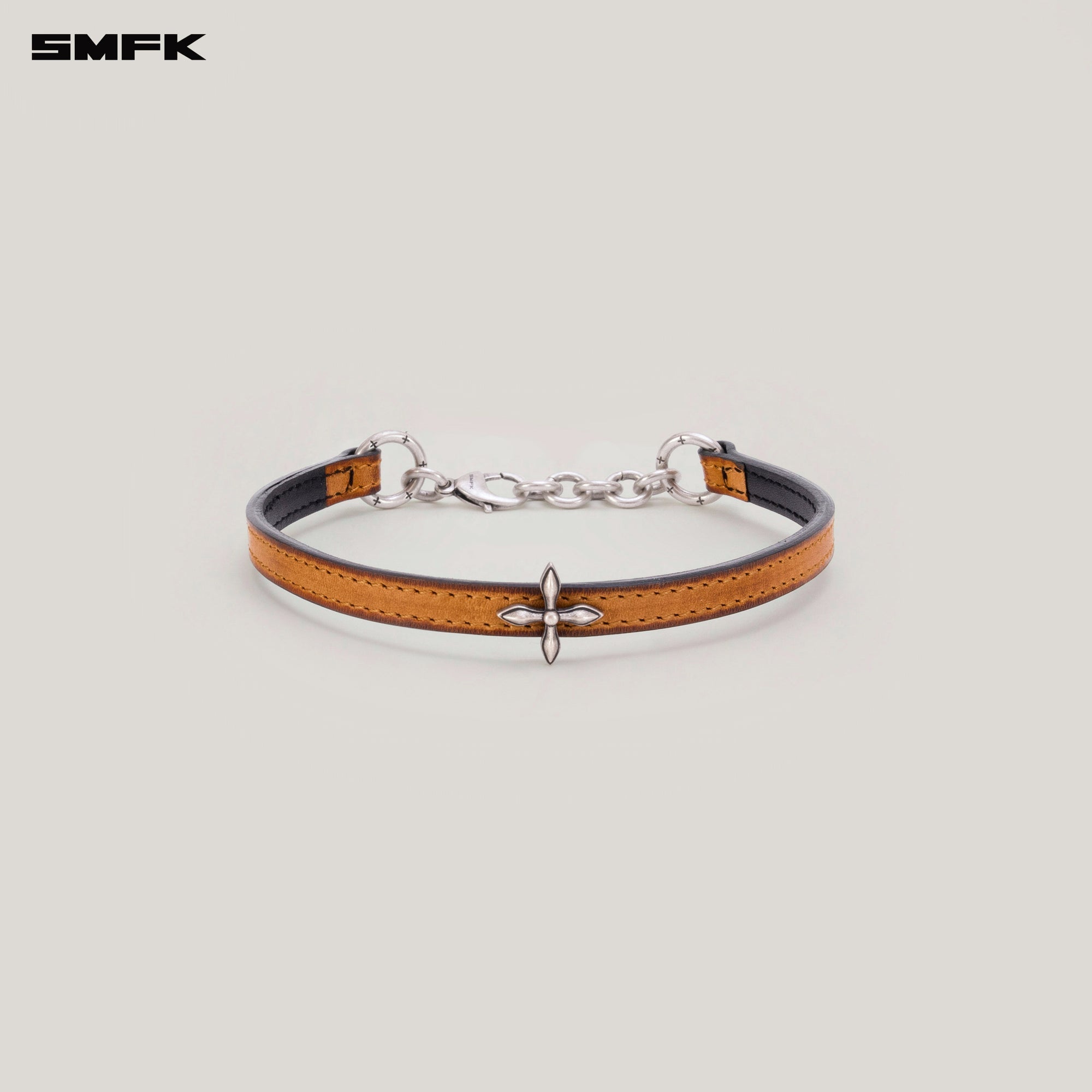 COMPASS RIVET PATINA LEATHER CHOCKER SMALL CARAMEL PATINA