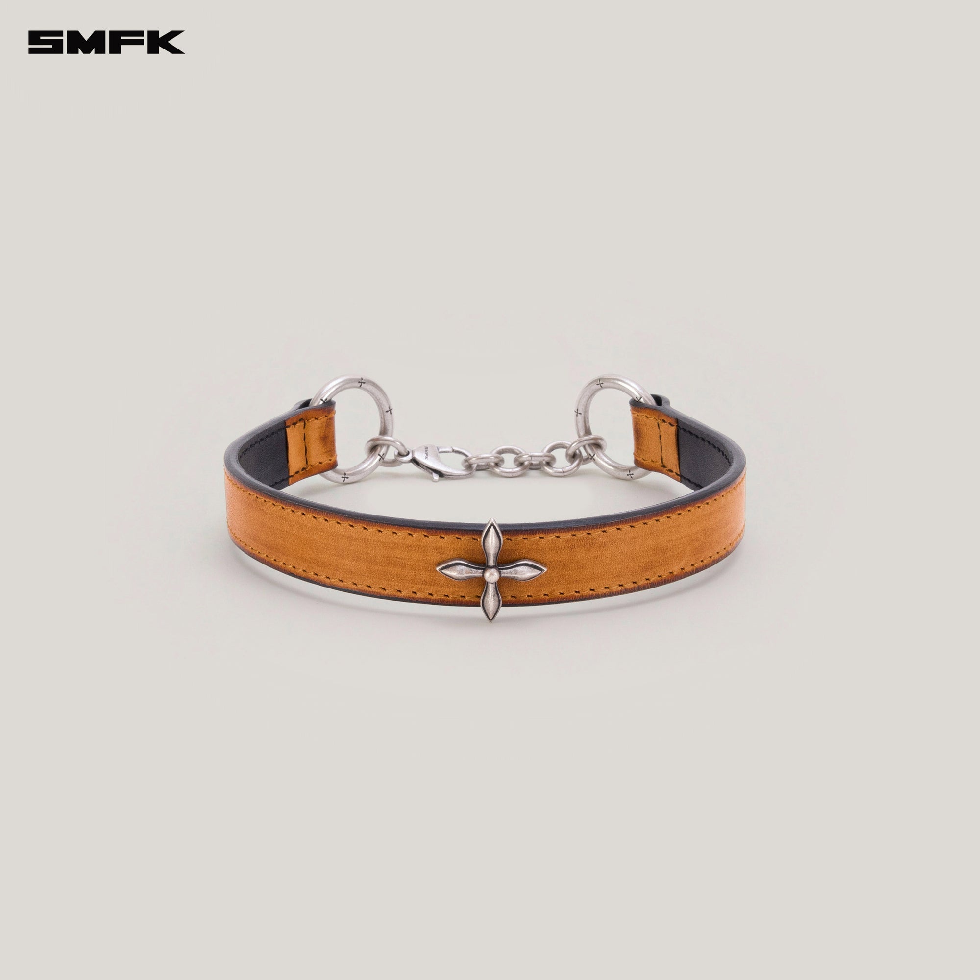 COMPASS RIVET PATINA LEATHER CHOCKER MEDIUM CARAMEL PATINA