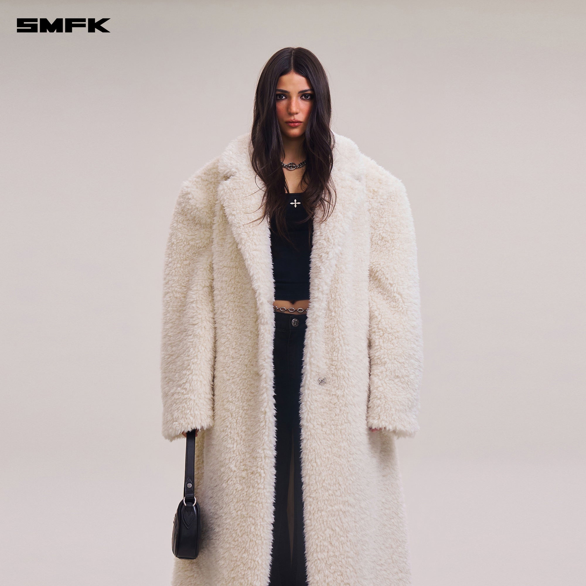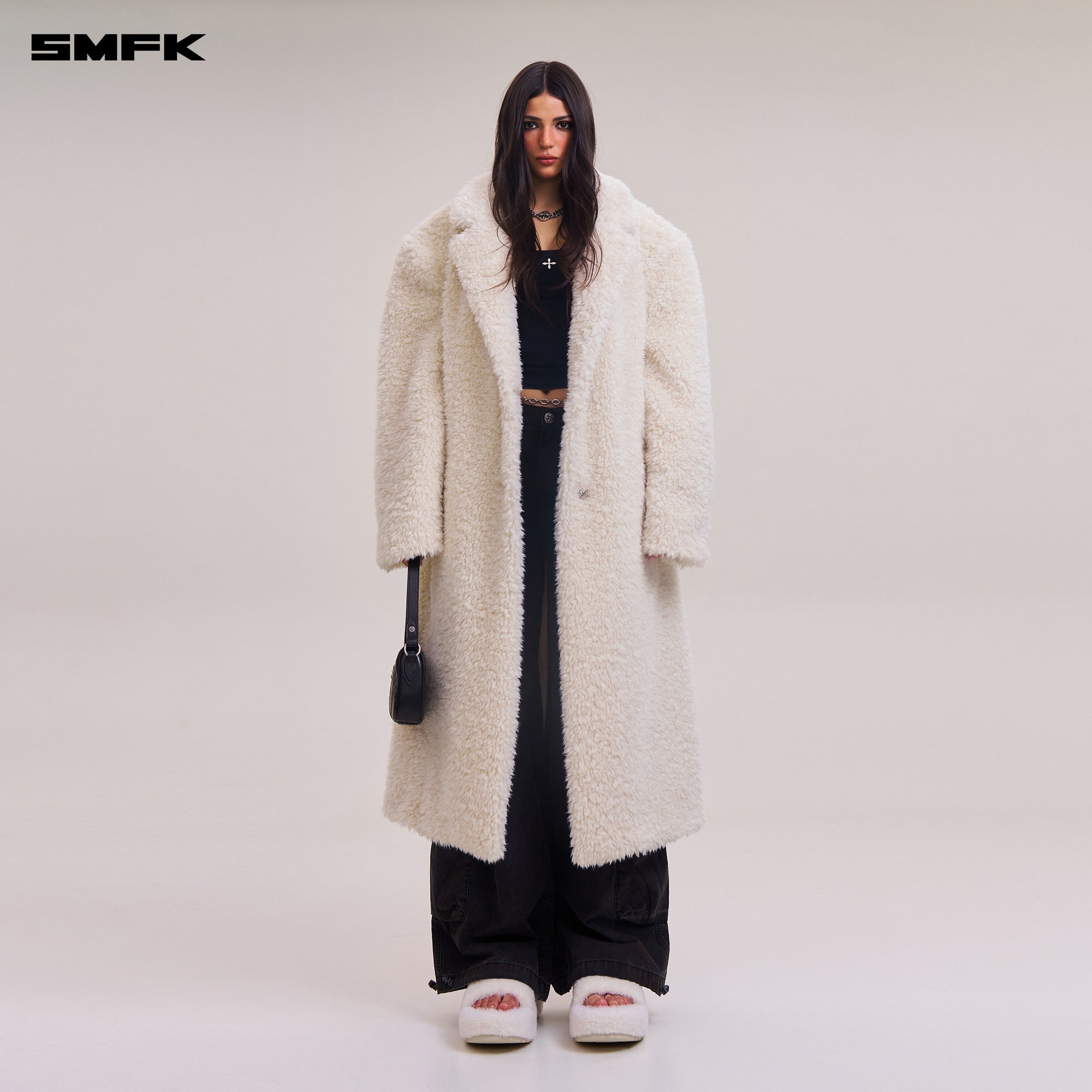 COMPASS MODE ROVE WOOL LOOSE OVERCOAT WOOL WHITE
