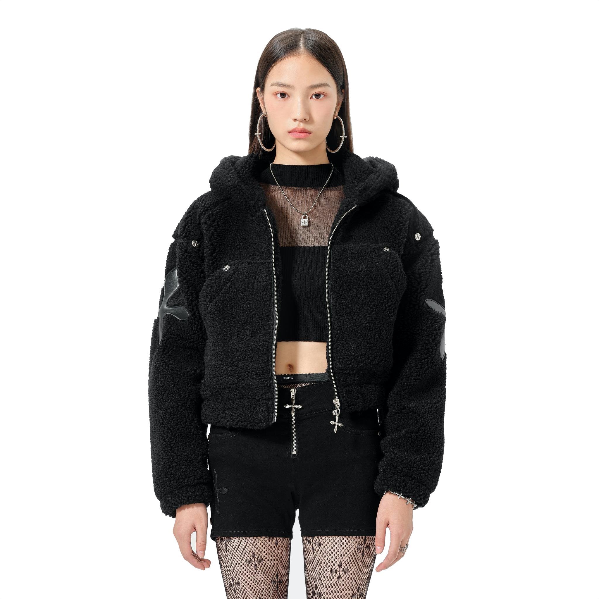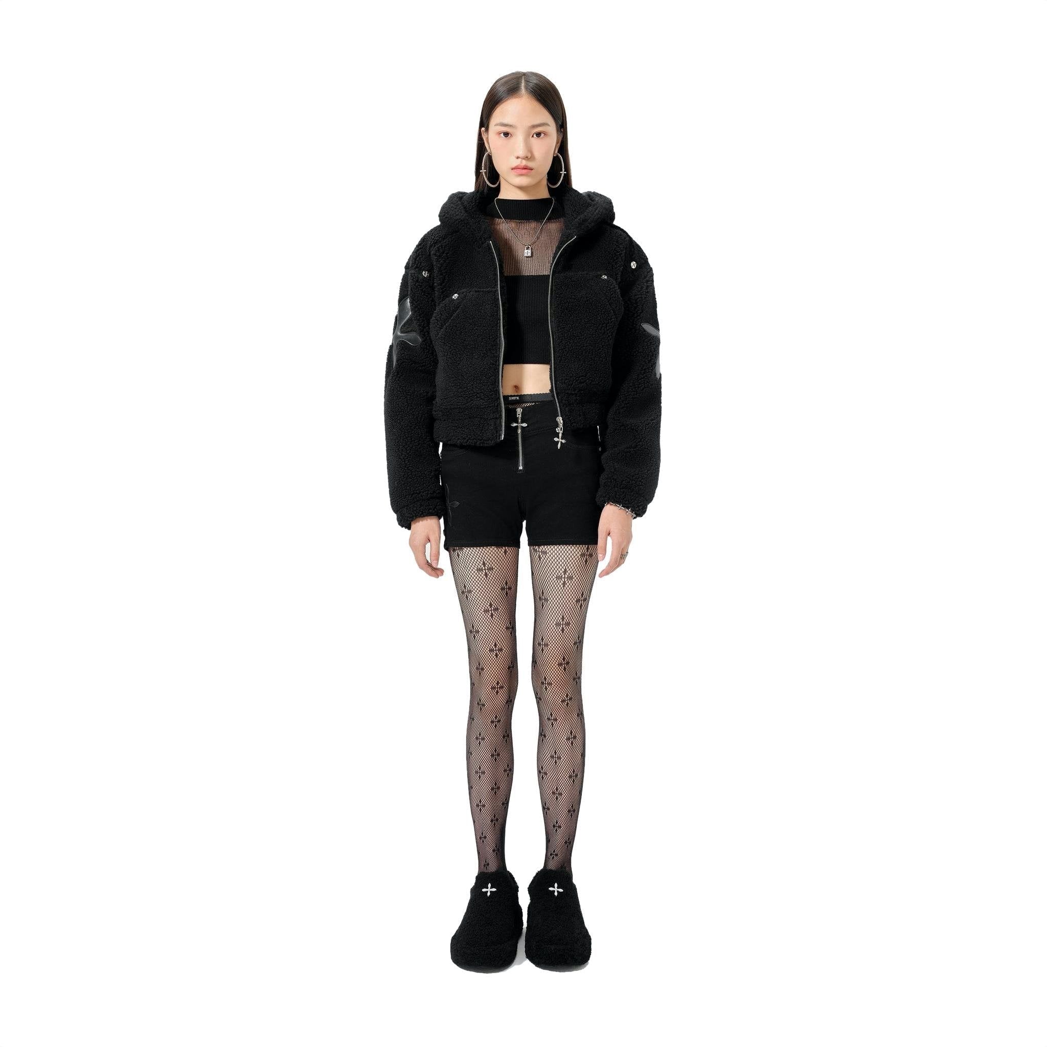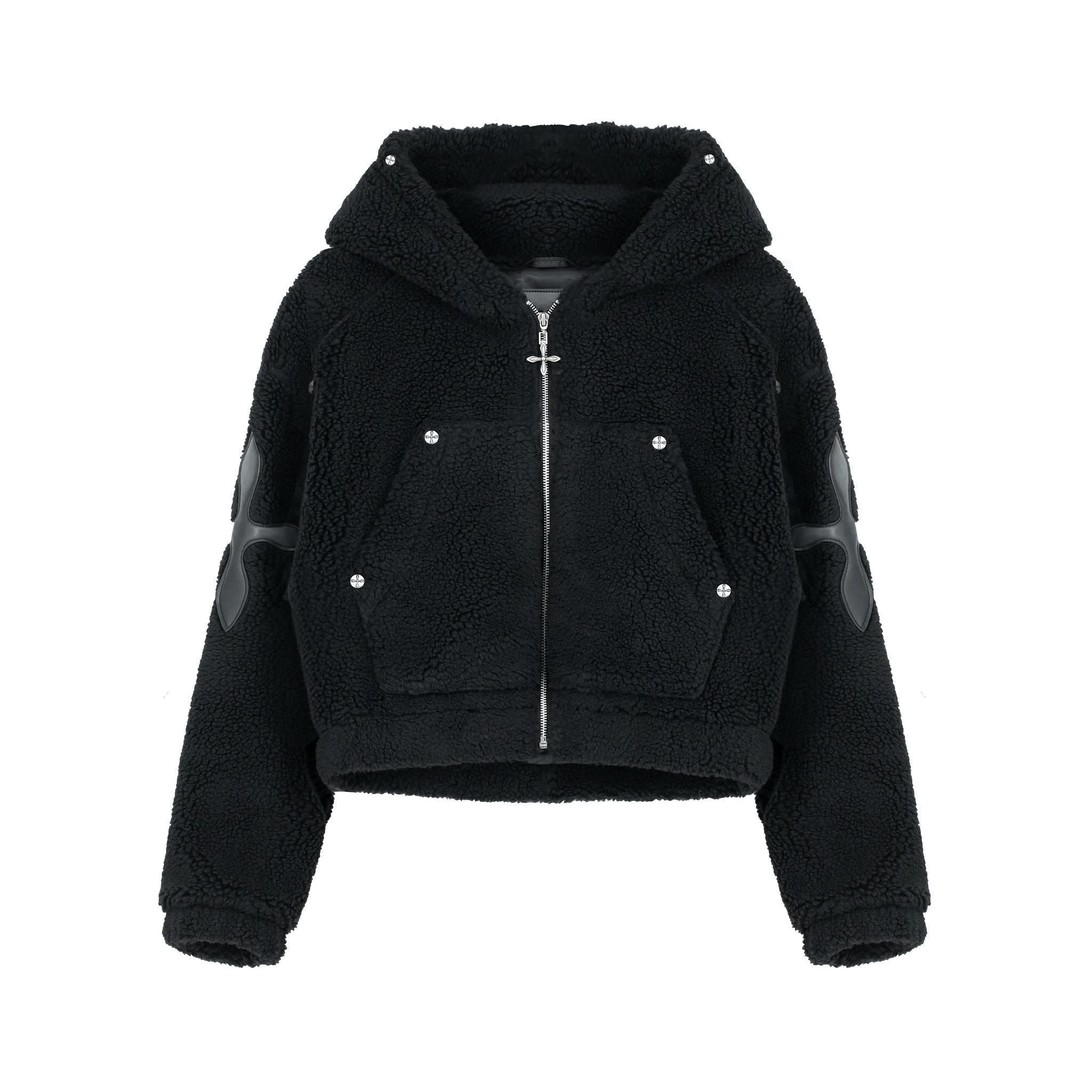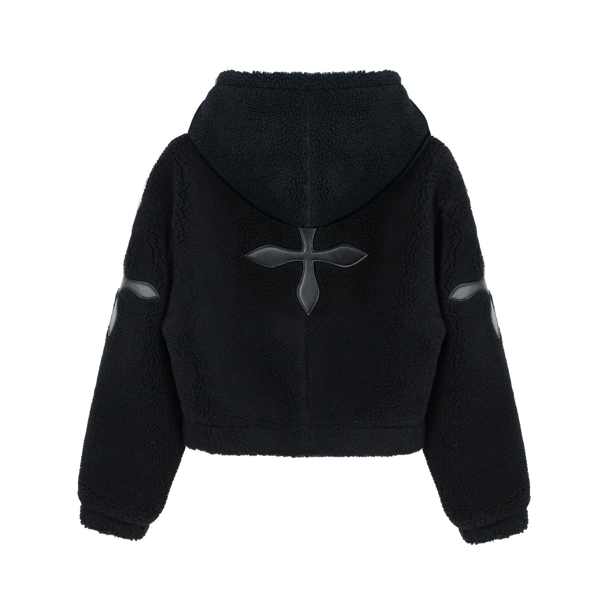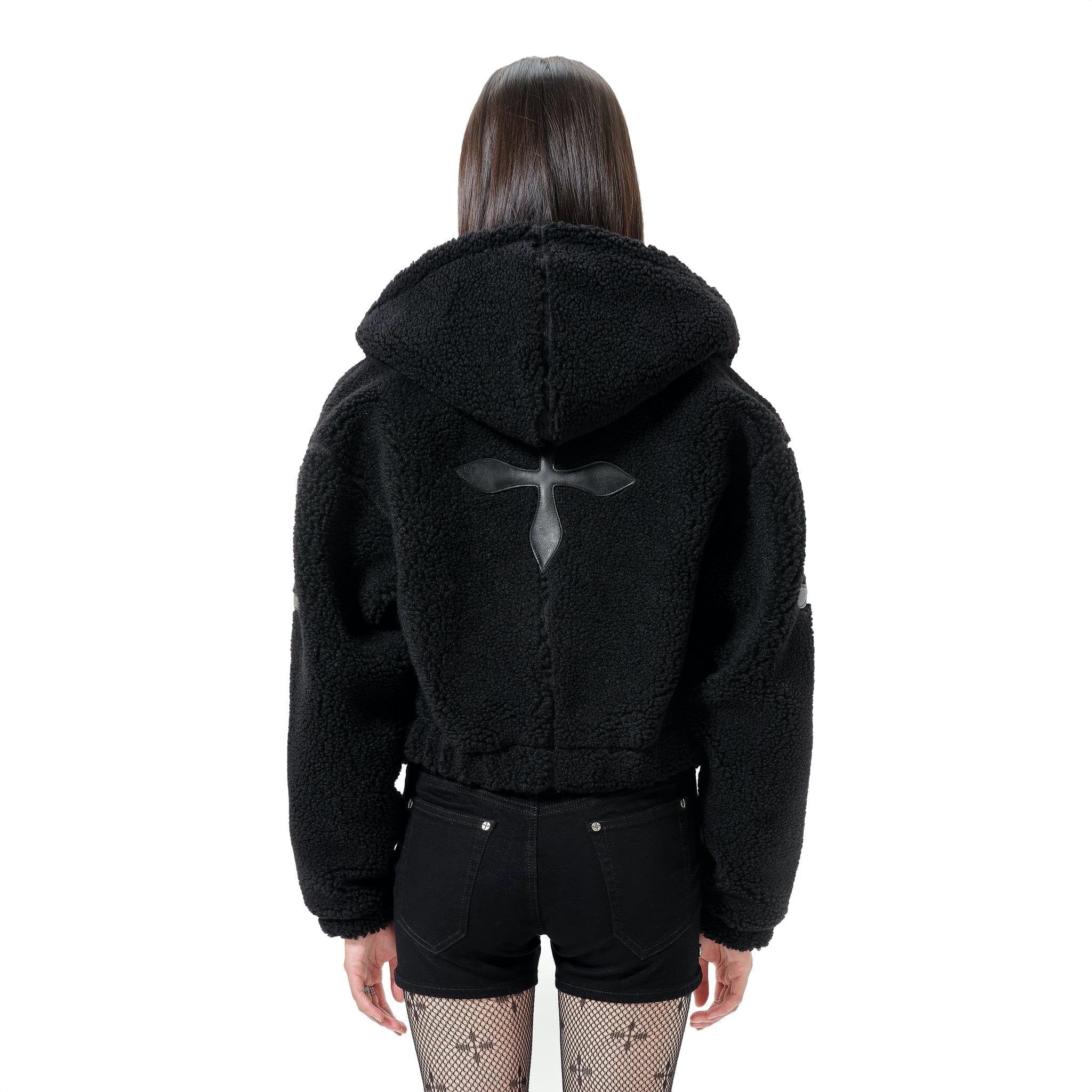 BLACK SNOWMAN SHEARLING HOODIE
