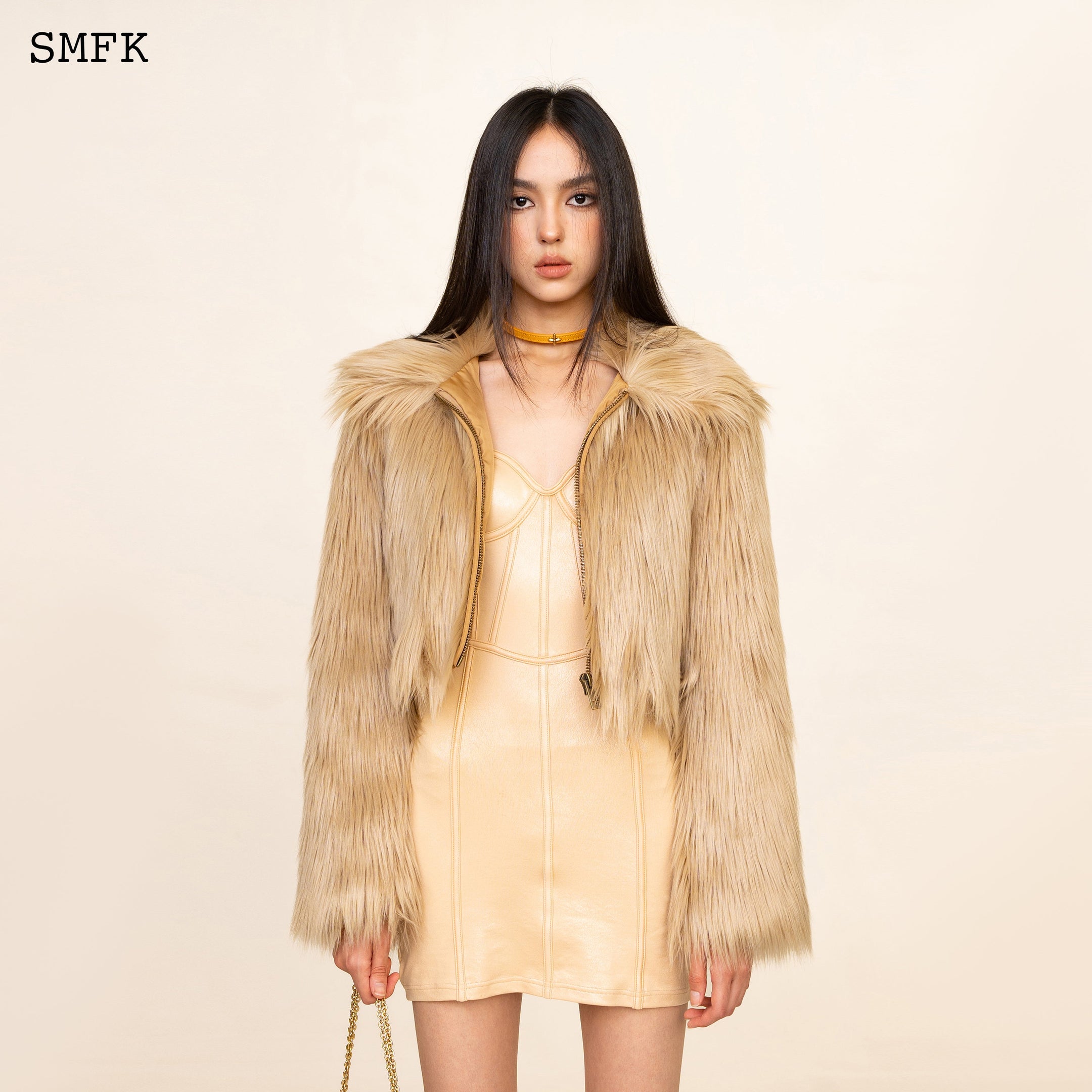 WILDWORLD FAUX FUR SHORT JACKET IN WHEAT