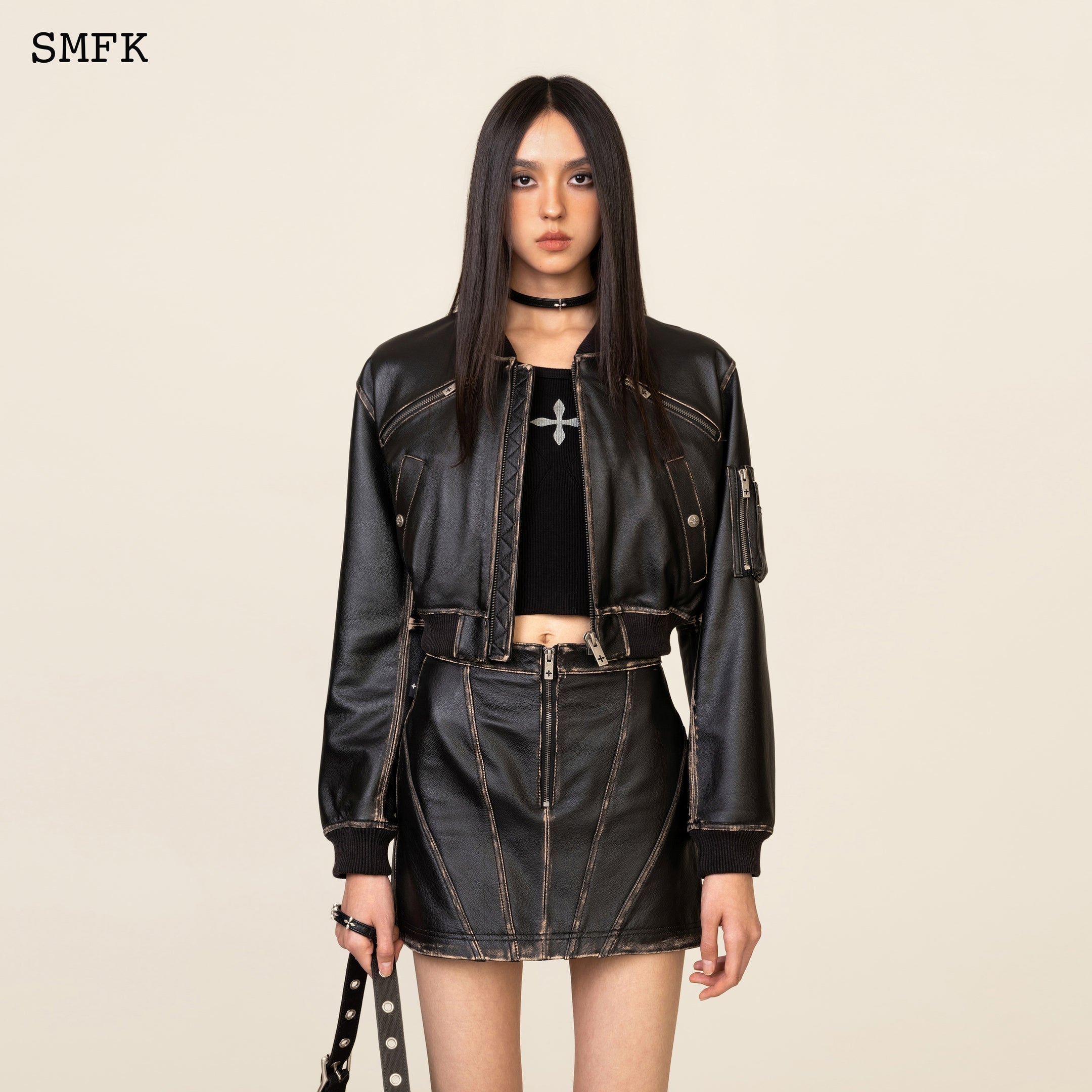 WILDWORLD RETRO PILOT SHORT LEATHER JACKET