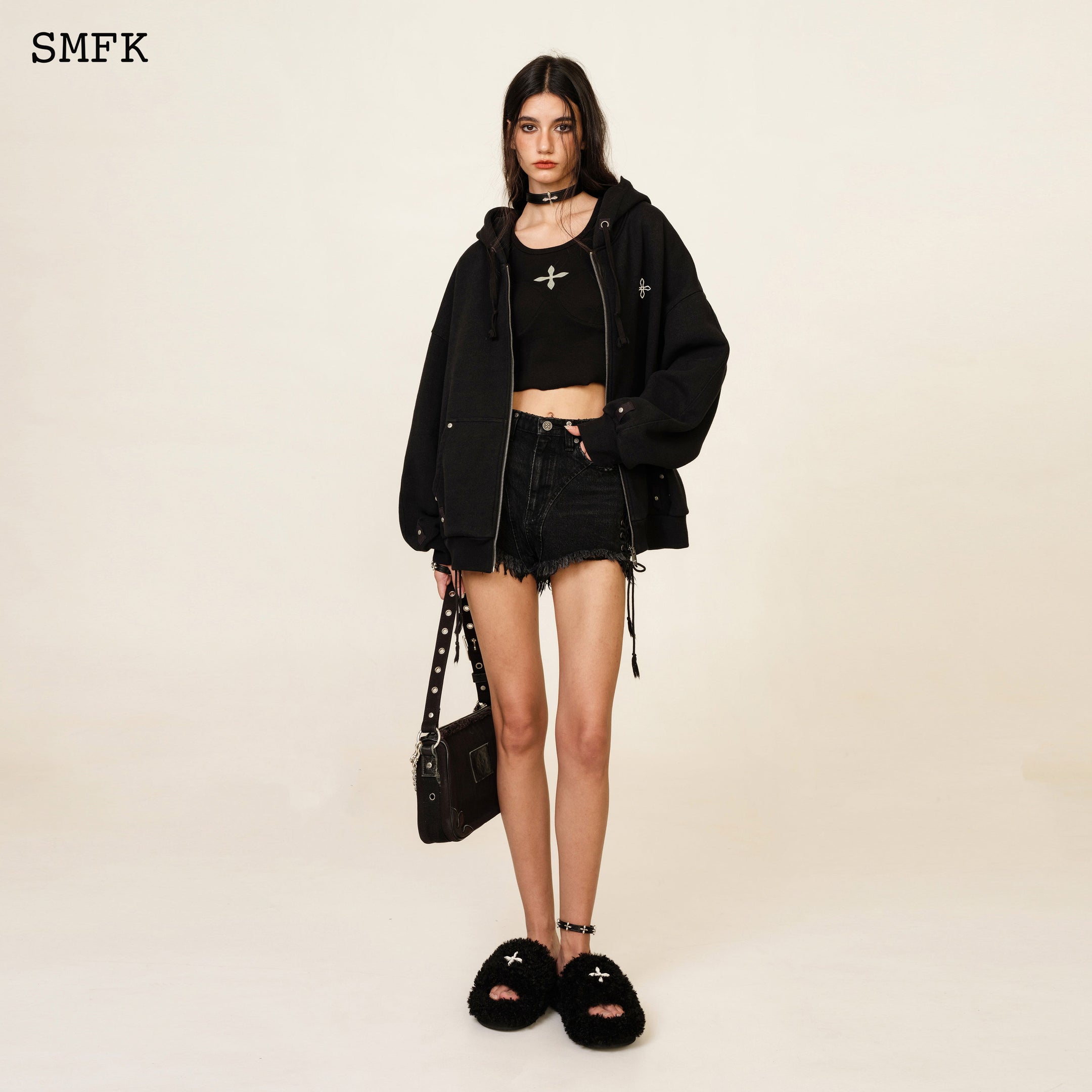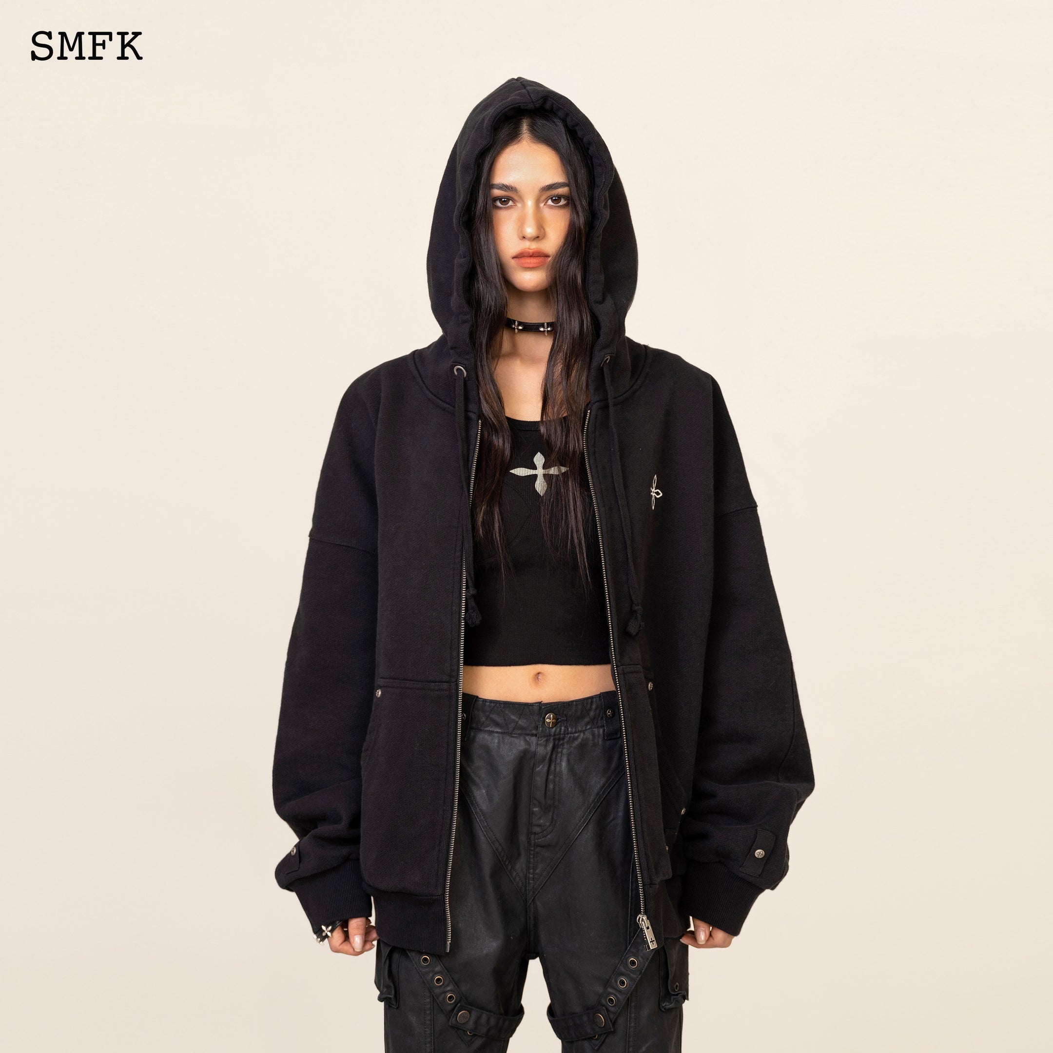 COMPASS CLASSIC CROSS HOODIE BLACK JACKET