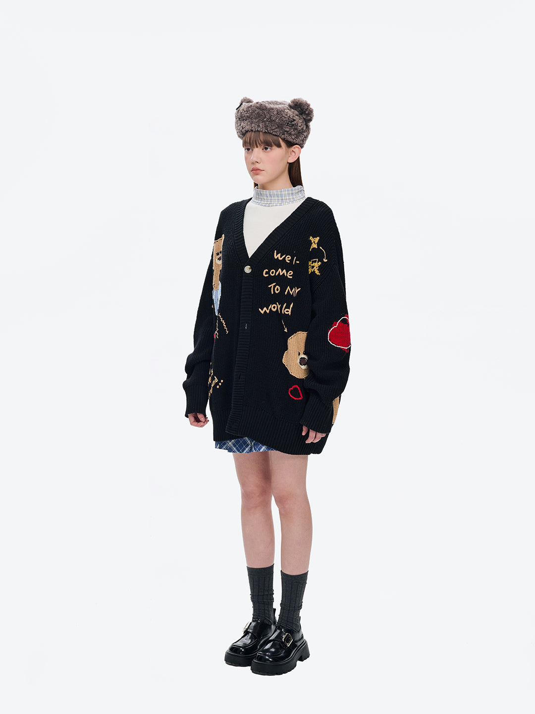 This plush beret with a 3D teddy and bunny design draws inspiration from the brand’s signature character imagery. The hat’s creative highlight lies in the three-dimensional bear and rabbit faces adorning the crown, bringing a playful and distinctive look.