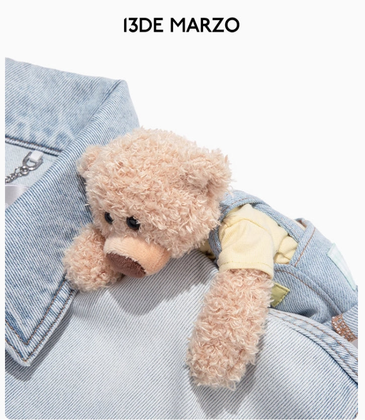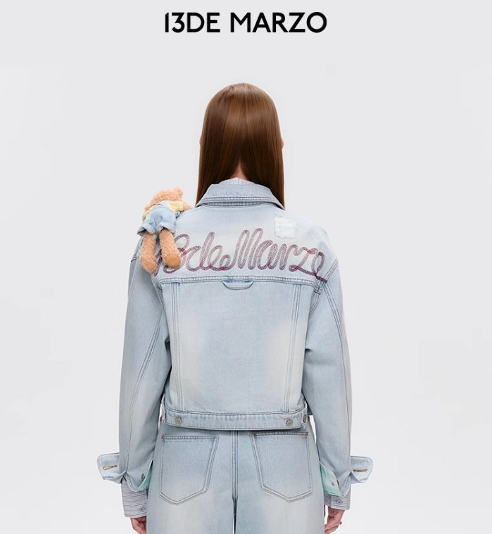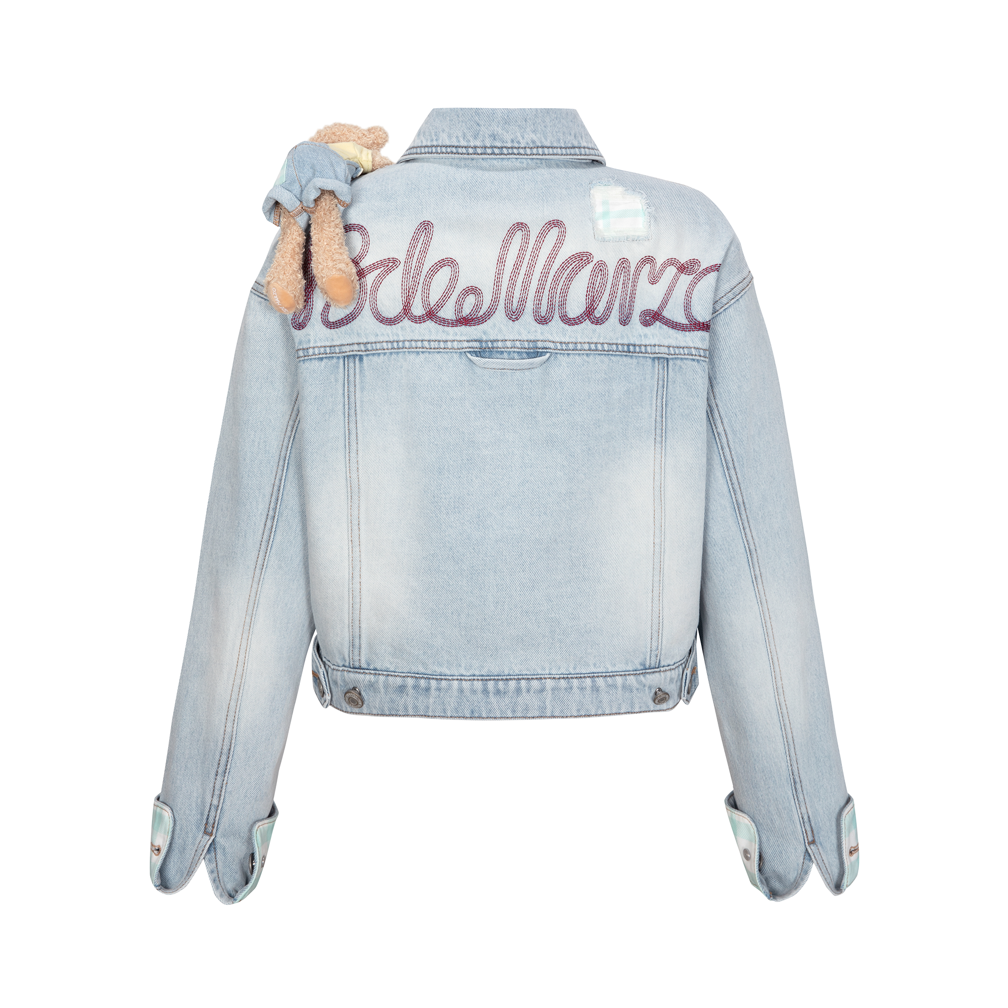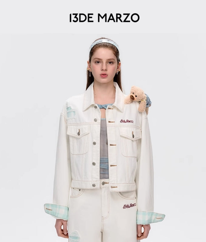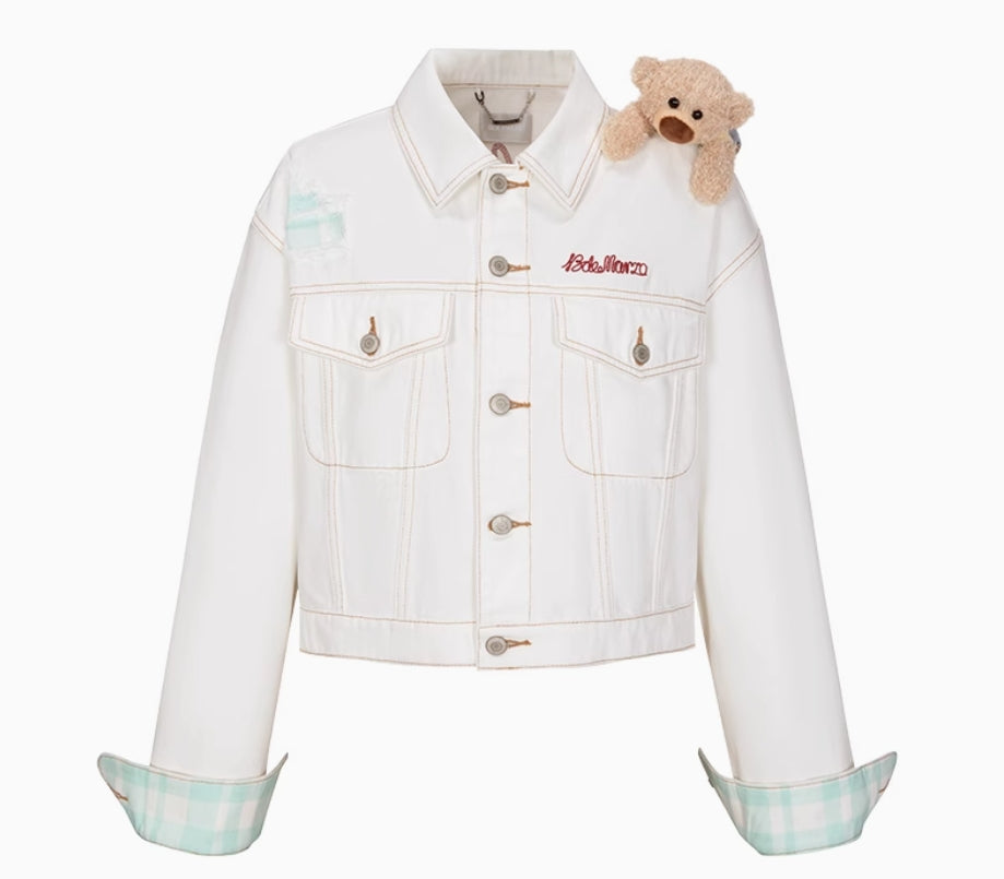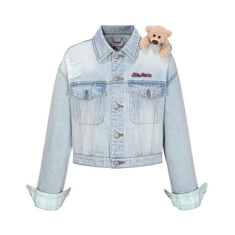 PLAID CUFFED SLEEVE DENIM JACKET