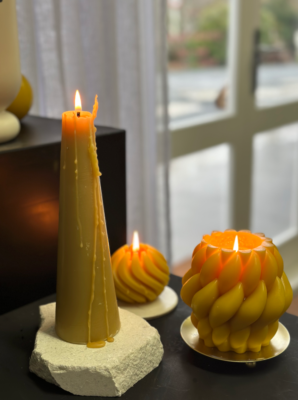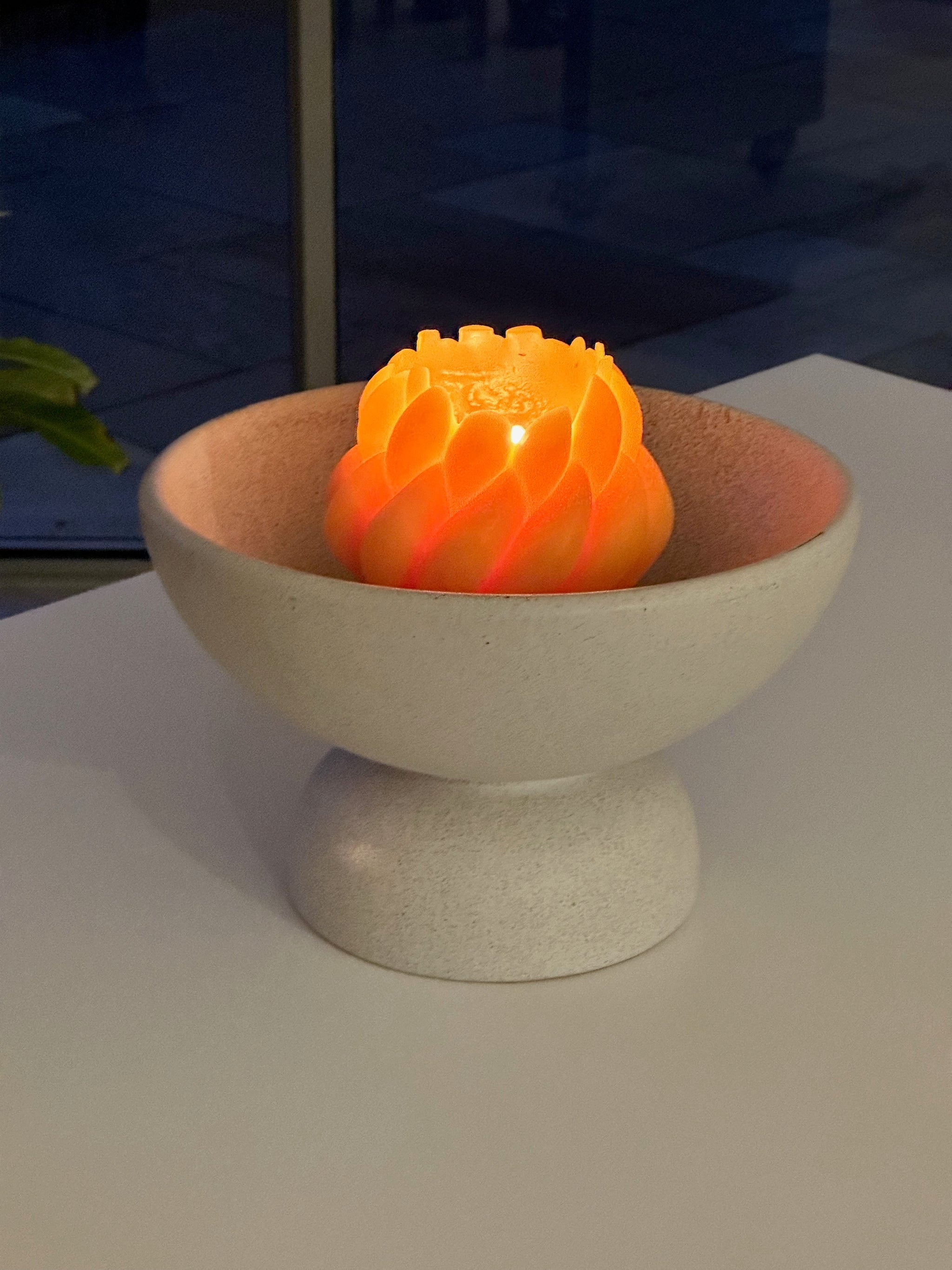 Our Jean Luis Candle is one of the most striking sculptural candles in the collection. Over the course of a 4-hour burn, it will open up to create its own vessel. The ideal opening size is a 7.5cm diameter (remember to blow out, trim the wick to keep the wick symmetrical and relight over a burn session). If looked after correctly it will give you 50+ hours of light.