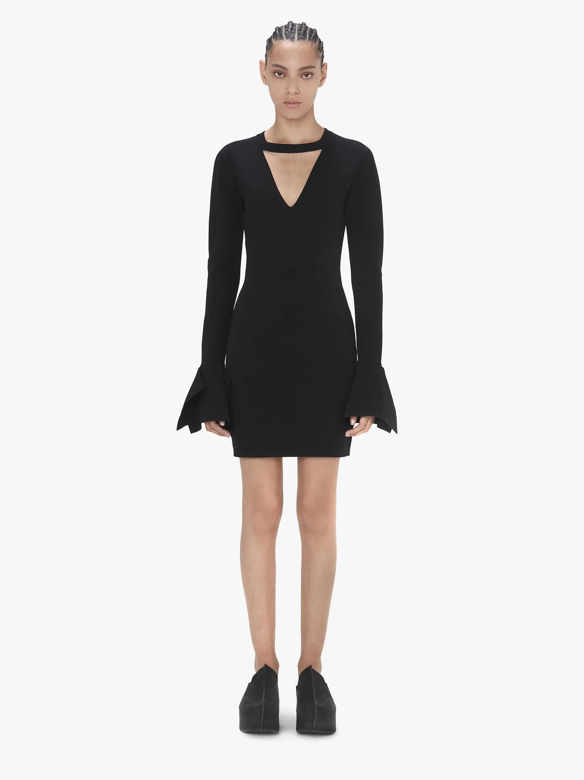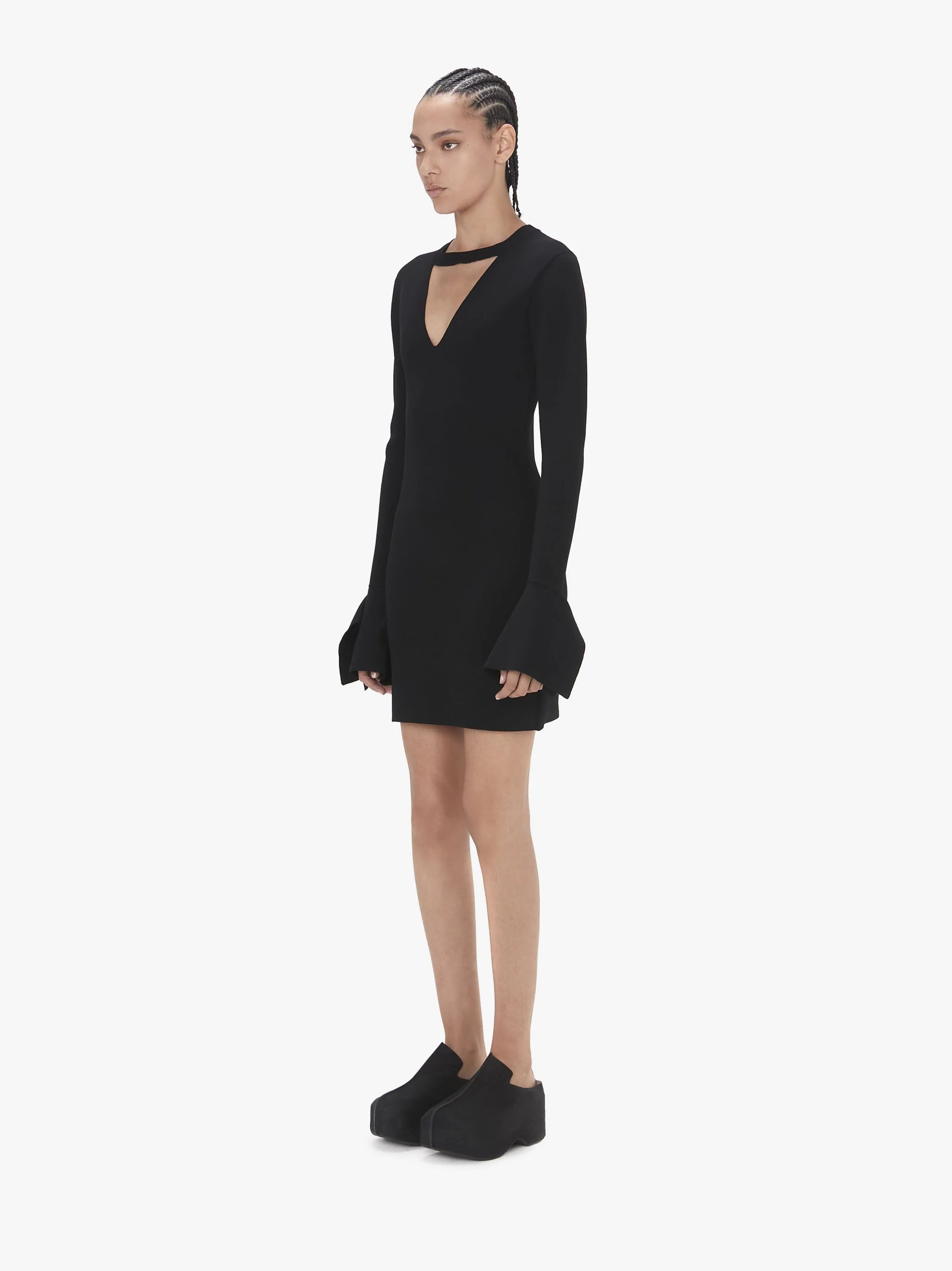 SQUARE CUFF V-NECK DRESS