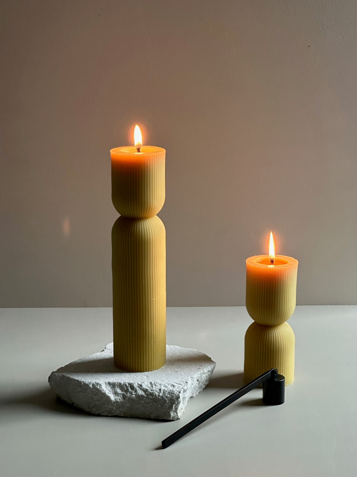 The Marlena Lucia Set is handcrafted out of 100% NZ Beeswax. This selection of two sculptural candles have been meticulously crafted with a minimalistic aesthetic. The elegant and classic design of these candles ensures they seamlessly integrate into any home style or interior space, creating a timeless and refined atmosphere.