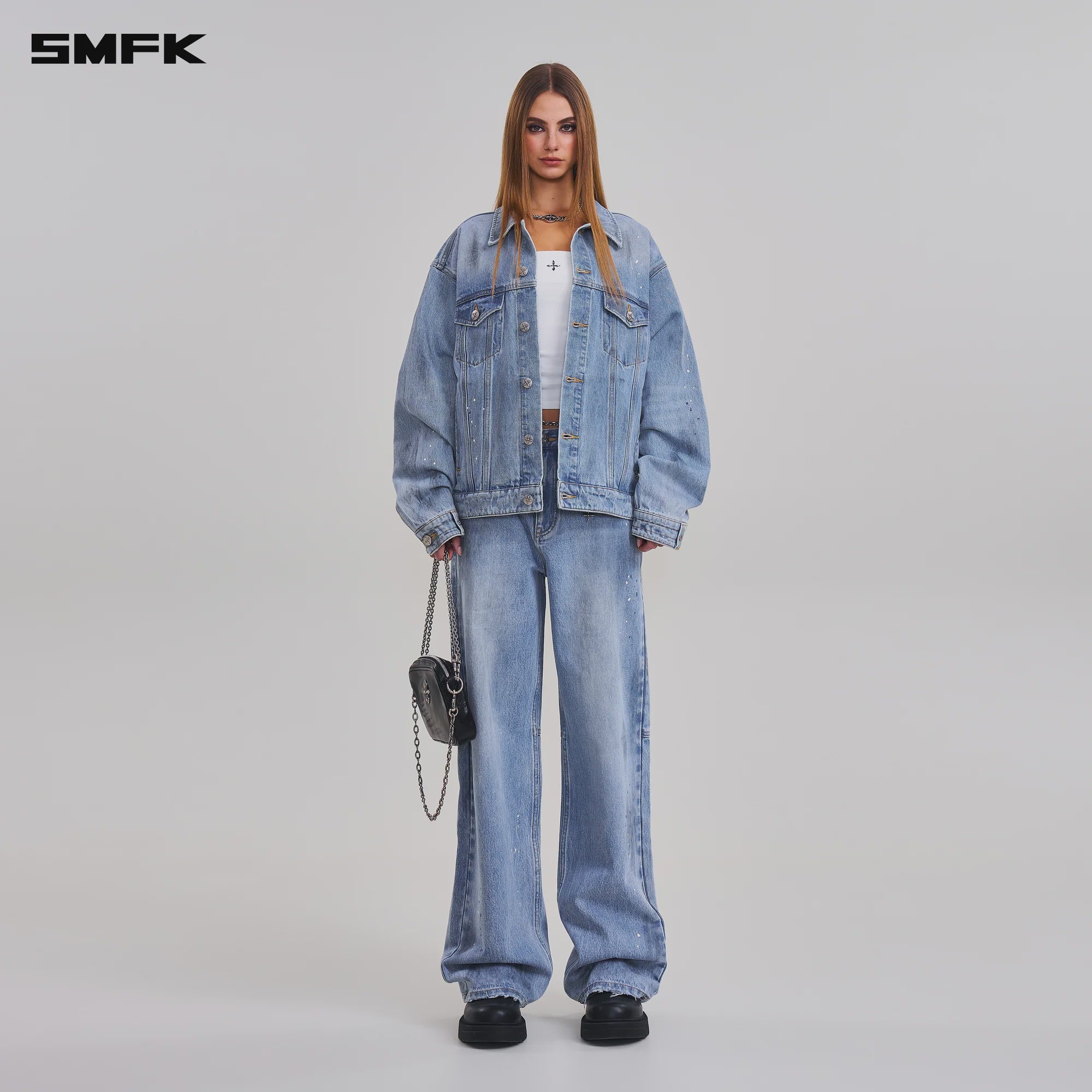 COMPASS MODE LOOSE STRAIGHT DENIM PANTS SKY BLUE
