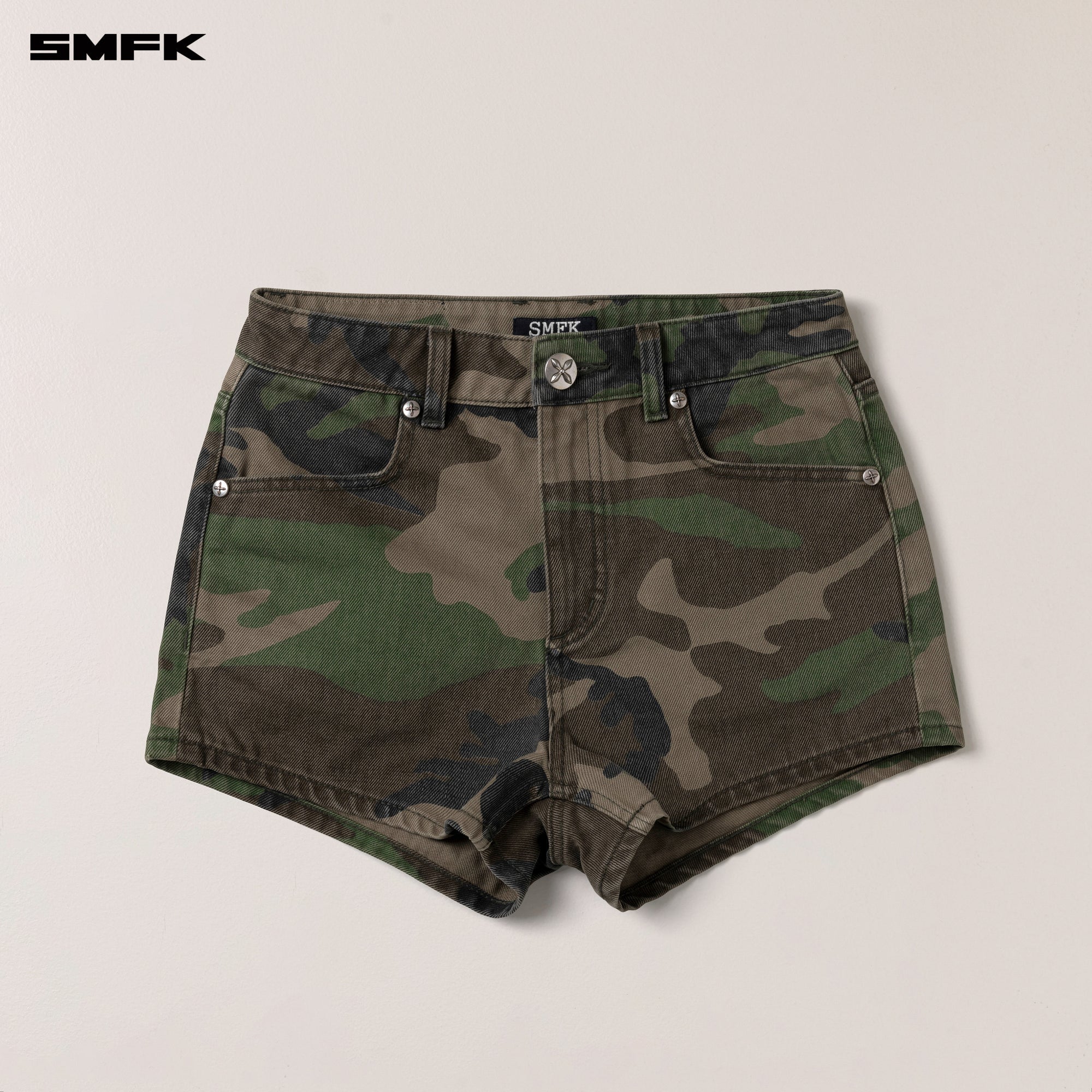 COMPASS DANCER DENIM FLAT SHORTS ARMY GREEN CAMOUFLAGE