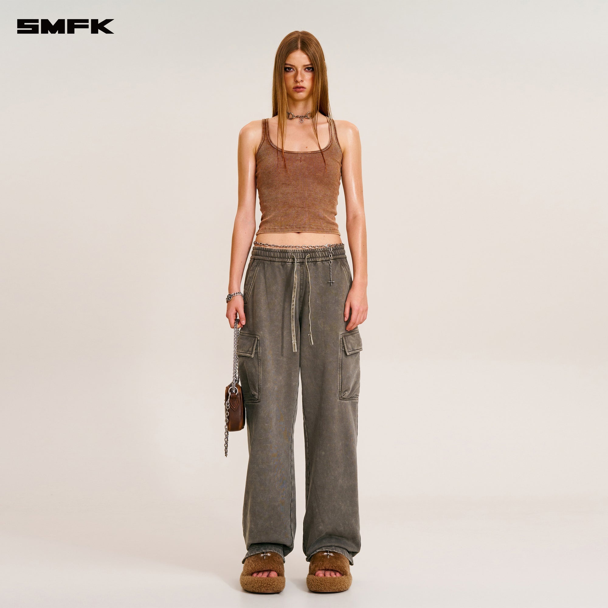 VINTAGE-SAFARI LOOSE SPORTS PANTS/FADE DYE WILD BROWN