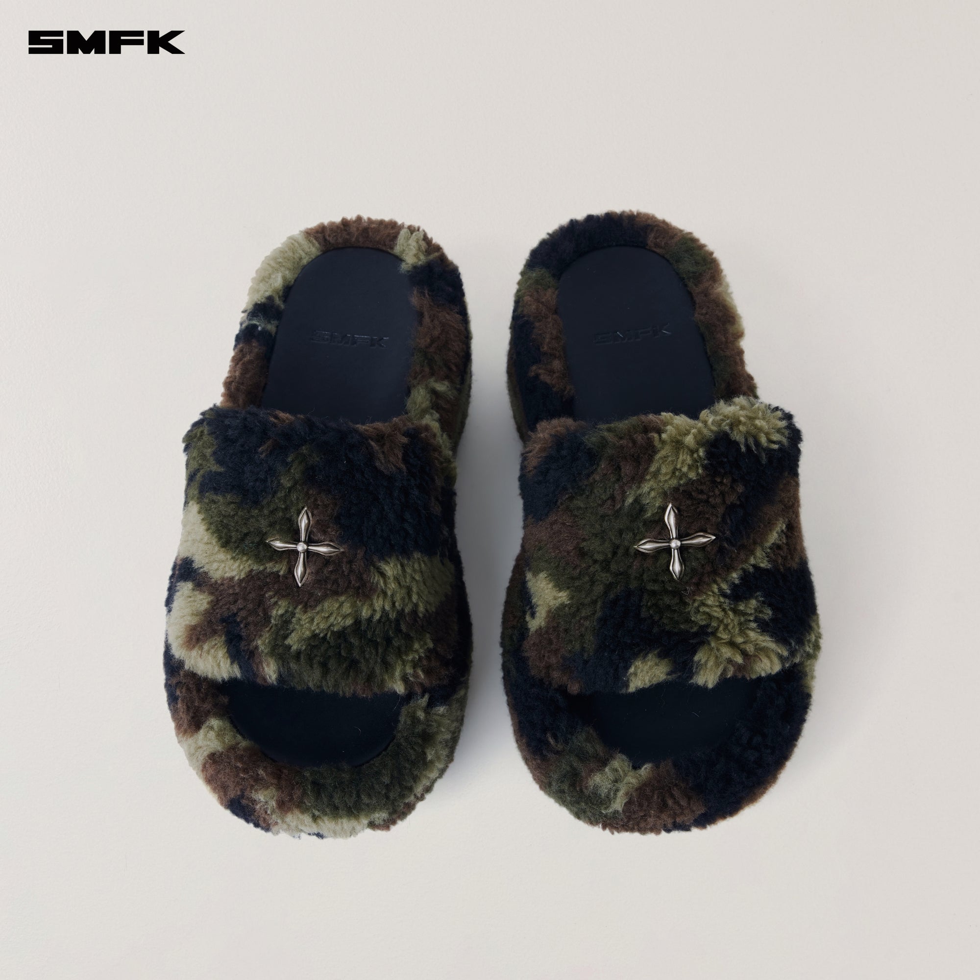 COMPASS MODE WOOL SHEARLING UNITY SLIPPER 8.5CM/HIGH ARMY GREEN CAMOUFLAGE