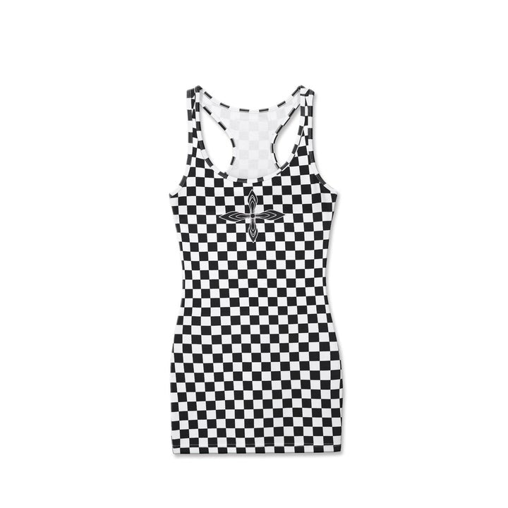 BLACK AND WHITE GRID TANK DRESS