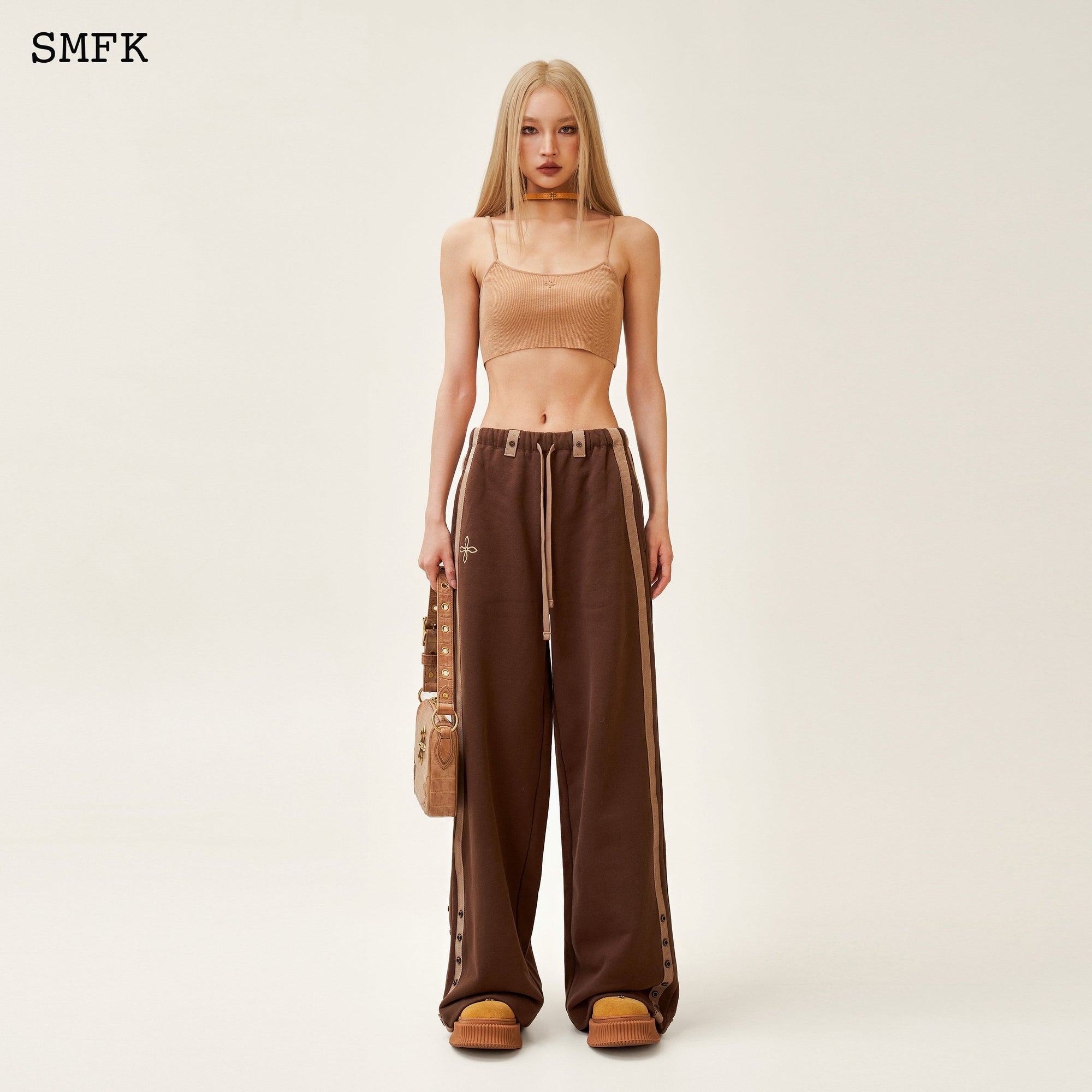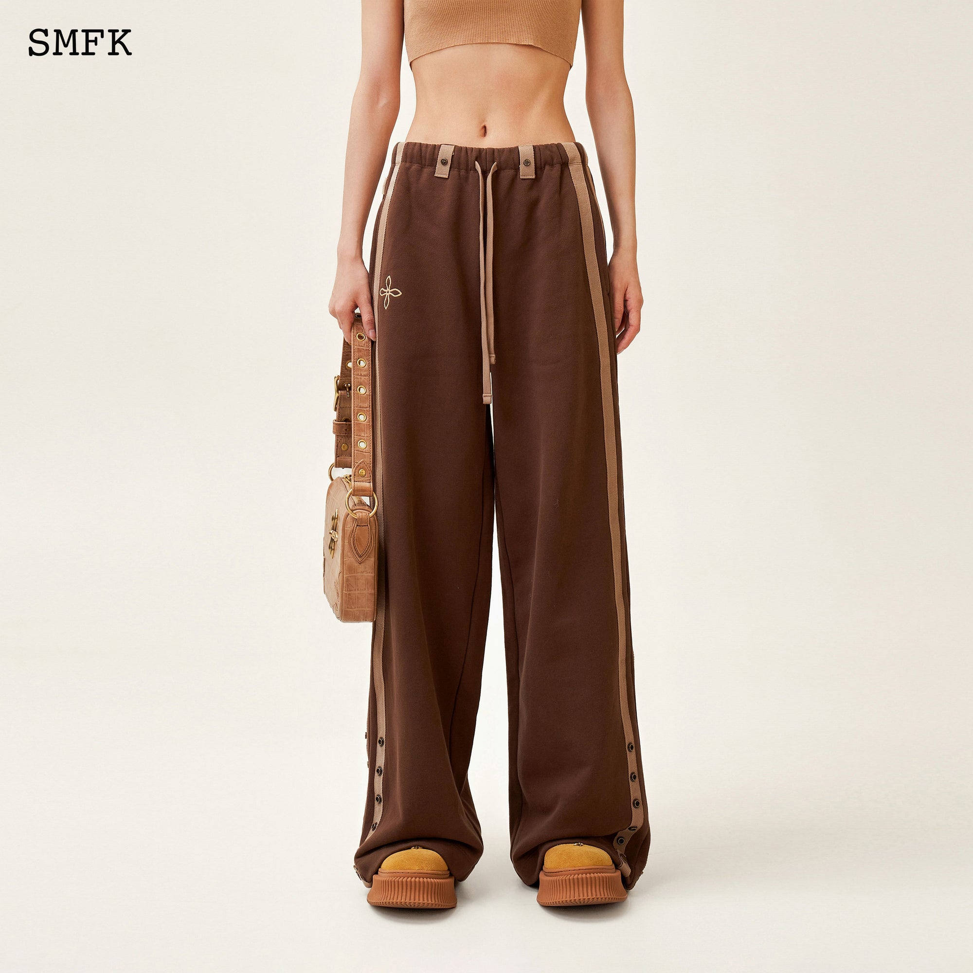 COMPASS ADVENTURE WIDE-LEG SWEATPANTS BROWN
